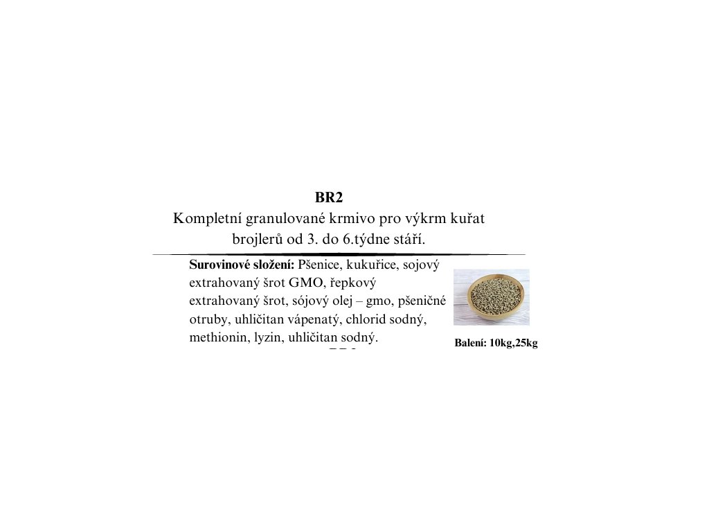 Kompletní krmivo pro výkrm kuřat brojlerů od 3. do 6. týdnů stáří.