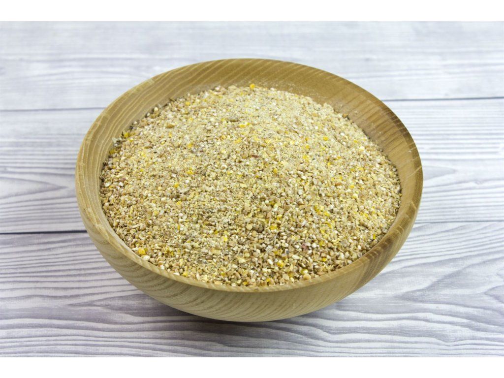 Surovinové složení: Pšenice, sojový extrahovaný šrot GMO, kukuřice, uhličitan vápenatý, chlorid sodný, dihydrogenfosforečnan vápenatý.