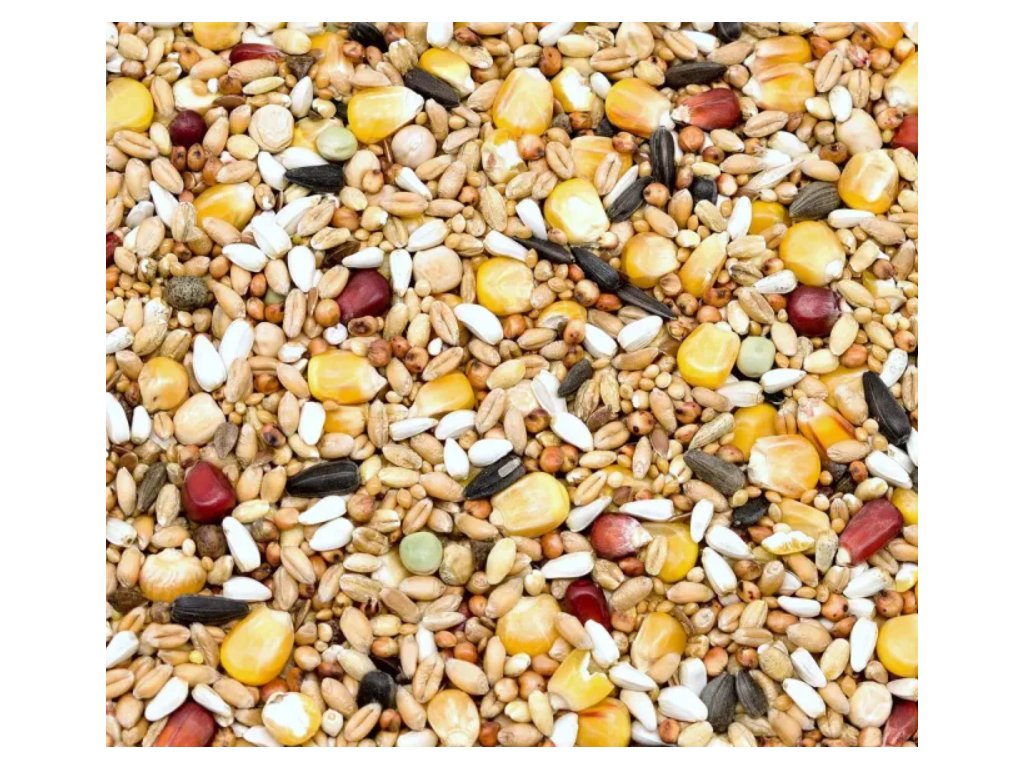 Složení: Kukuřice, pšenice, čirok, ječmenná krupice, světlice barvířská, žlutý hrách, proso žluté, zelený hrách, proso bílé, slunečnice černá, hrachor luční, pohanka.